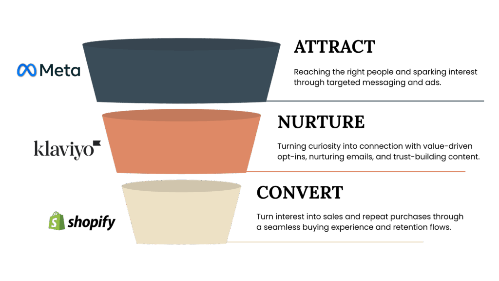 Ads can drive traffic but traffic without a funnel is wasted. Today’s buyers expect more than an offer and a discount code. If you don’t have a system that warms them up, builds trust, and converts them into customers, your ad spend is leaking money.